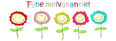Meivakantie van 21 april t/m 5 mei. Fijne meivakantie! Aansluitend is er een studiedag. We verwachten de kinderen donderdag 7 mei weer op school.